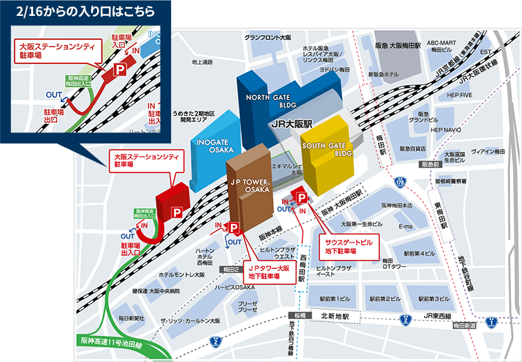 大阪ステーションシティ駐車場までのルート案内