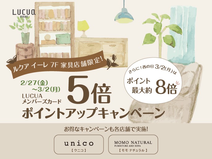 家具店舗限定5倍ポイントアップキャンペーン