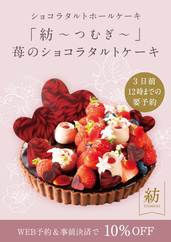 【ご予約制】ショコラタルトホールケーキ「紡~つむぎ~」 苺のショコラタルトケーキ