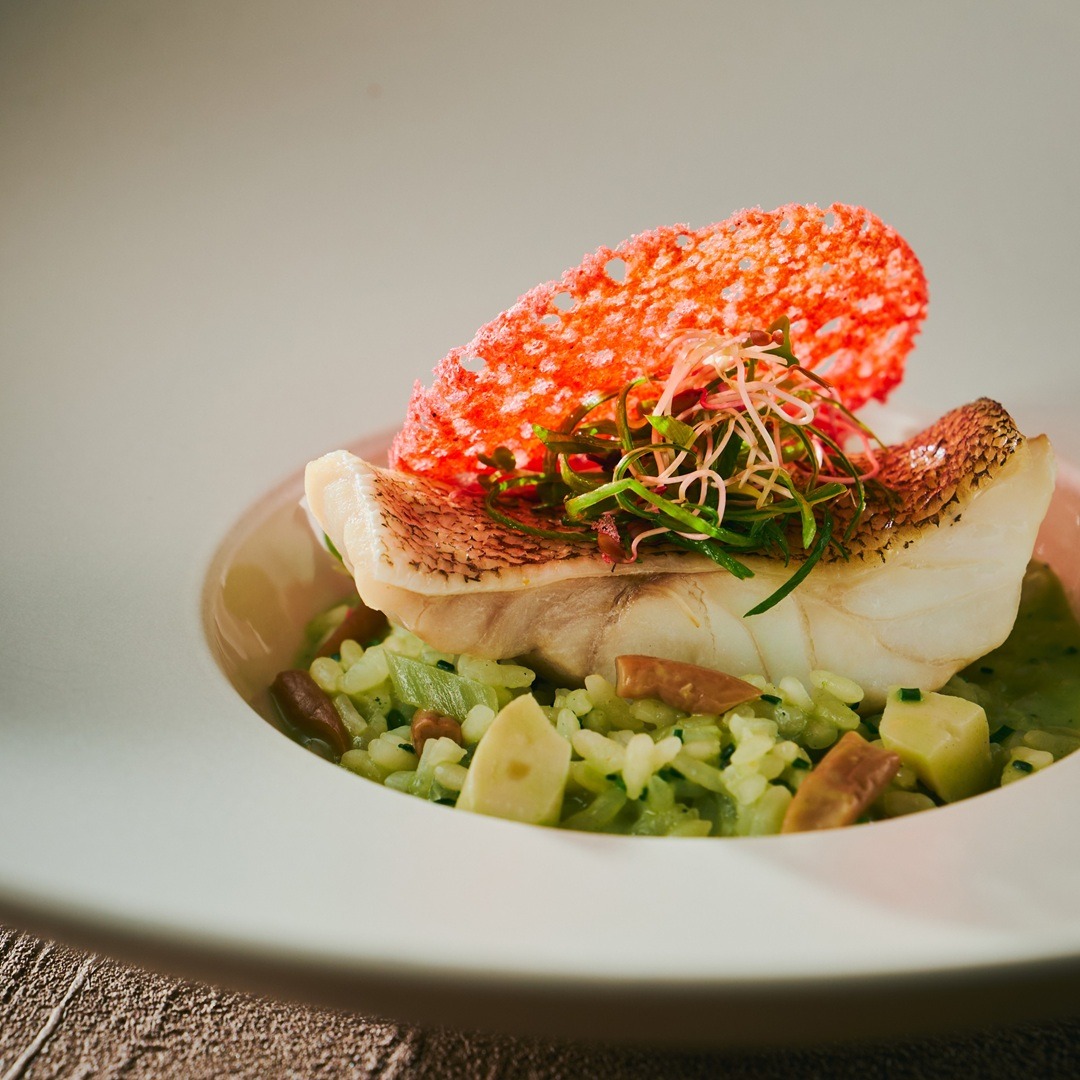 お好みで選べるオーダー制のチョイスメニューで「季節魚のポワレと山菜のリゾット」をはじめ、春風のように軽やかな味わいを楽しんで。